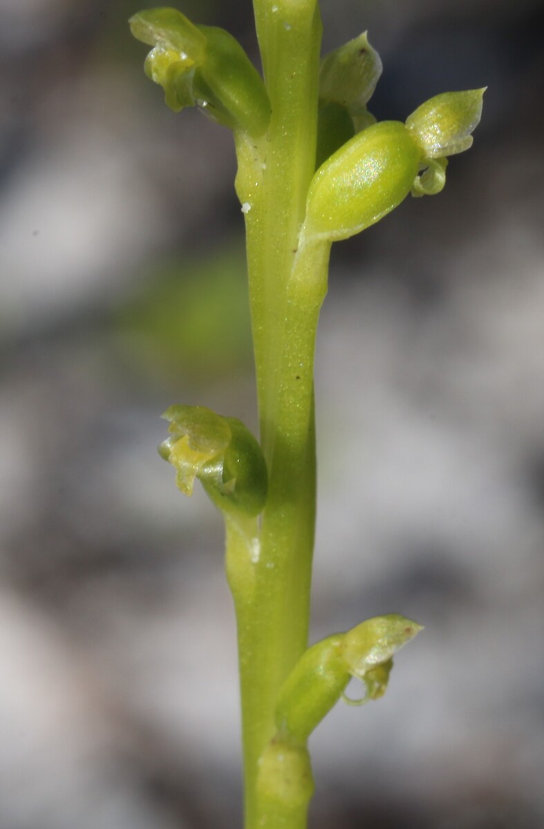 True M. parviflora has a very smooth-edged labellum; some NZ forms with triangular labella have undulate or notched margins and may be a different entity.